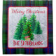 Based on a background of your Scottish Sutherland Clan tartan plaid is a white icy square, decorated with five watercolor evergreen trees. Red baubles and wrapped presents set one tree apart. "Merry Christmas" in a red script font is at the top, and "The Sutherlands" in a fun "all caps" font, also is red, is below. All is surrounded by a wide red band against the green, blue, red and white tartan plaid of the Sutherland family in Scotland and around the world. Personalise your name with the spelling your branch of the vast family currently uses. The popular plaid is under Crown Copyright from the Scottish Register of Tartans.
