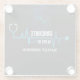 A modern unique and elegant blue and white stethoscope in a Heartbeat shape, Custom Graduation Name Year class of a 2025 graduate. Classy custom high school or college graduation Glass Coaster for the graduate student. Personalise with your graduating year class, graduating child's name, and school under the black grad cap. Elegant gold typography for a parent.
