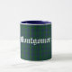 Great looking Scottish clan mug done in the classic blue and green Montgomery / Montgomerie plaid pattern. Old world style text in white reads Montgomery and is customisable to read what you want.