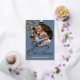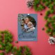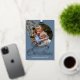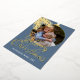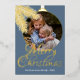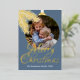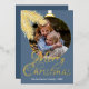 Contemporary classic Christmas holiday season greeting card with white coloured pine tree needles wreath leaves pattern on a classy blue grey background, with real gold foil Merry Christmas wish text. With option and room to customise the text, family name and year date, and add a personal photo of your choice on the front, and a customisable season greeting message on the backside of the card.
