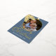 Contemporary classic Christmas holiday season greeting card with white coloured pine tree needles wreath leaves pattern on a classy grey blue background, with real golden foil Merry Christmas wish text. With option and room to customise the text, family name and year date, and add a personal photo of your choice on the front, and a customisable season greeting message on the backside of the card.