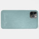 Contemporary light aqua seafoam green coloured faux leather textured cellphone case. With room to customise with a name, monogram, or initials of your choice. Beautiful, modern, and cool cover for the trend-savvy and art-loving hip trendsetter, artsy motif lover who wants to protect their phone from dust and dirt, wear and tear. This design is available in Apple iPhone 6, 7, and 8 Plus, 10 or X, XR, XS, 11, 12, 13 Mini, 14 Plus, and Pro Max cellphone cases. Show off your style, look fashionable, and feel stylish with a unique design on a mobile device accessory of your choice.