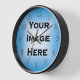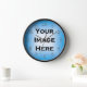 To customise this product, upload your own background image or photo as shown above. To resize or adjust its position, click the Customise It! button below the product image. The positions of the numbers on the clock face can also be tweaked to your liking by resizing the transparent clockface image. You can also add your own text and/or other images if you wish to further personalise this design.