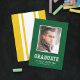 This varsity style photo graduation announcement card has editable background colors. To change the front background color, select the "GraduationFront2" layer and change its color. To change the back background color, simple select background and change the color.This a great way to match your announcement to your school colors.