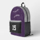 Choose your own colors! This softball themed backpack is accented with the image of a minimalist softball (only the stitches are represented in white) - the front pocket can be personalized with the athlete's name and jersey number - you can customize the colors of the backpack's components--access the Zazzle design tool by pressing the "Edit this design" button above to change the backpack component colors, currently purple, black and light gray - a digitally-created, texture-look graphic overlies the backpack's individual components for a distressed appearance, which can be removed if desired - by katz_d_zynes