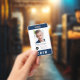 STAFF Photo ID badge with an editable top bottom border colour (click customise, select "NameTagBadge3.2" layer and change colour), editable back background colour and which you can also add your logo. Great for all types of staff at workplaces and events such as meetings, conferences, concerts, shows, exhibitions, etc.