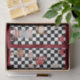 This lovely customisable tissue paper features an Alice in Wonderland theme with a default red border and classic black and white chequerboard pattern. In the centre, young Alice is wearing a long dress and holding a small White Rabbit. Alice is surrounded by surreal tea party items, with tea cups, a teapot, hearts, a mushroom, mad hatter hat, pocket watch, and a myriad of flying playing cards. The default background colour is white, hit the Customise button to change the colour or border if you wish. Makes a great gift or decoration for lovers of checked and chequerboard patterns, Alice in Wonderland, the White Rabbit, classic literature, and quirky fairy tale designs. This design is also available on gift bags, stickers, and other items.