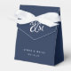 Place your wedding favours in these simple, chic boxes finished with a white ribbon. Navy blue boxes feature your initials in white lettering, joined by an oversized calligraphy script ampersand to form an elegant monogram design. Personalise with your names and wedding date or choice of text. To customise to match your wedding colours, select "click to customise further" and choose a new background colour.