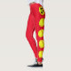 Custom Colour and Jersey Number Softball Leggings: A unique pair of leggings for any fastpitch softball player, coach or fan. Bright yellow softballs run up and down the side of each leg, with a spot to enter your own jersey number (or any other text, like initials) in the centre of the top softball. Click the "Customise" button to change the background colour, currently set on red, and click "show more" to see the full range of colour options. These are great for wearing to practice, scrimmages, or just around town.
