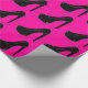 This fun wrapping paper features a pattern of black stilettos on a hot pink background. The background colour can be easily changed by clicking Customise It, Edit and Background.