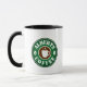 Custom colour coffee mug with personalised name. Cool combo colour cup for coffee lover, friend, dad, mum, wife, husband, boyfriend, uncle, grandpa, company boss, coworker, barista, coworker, coach, colleague, school teacher etc. Round shop sign with coffee beans and cup silhouette. Black and white and other colours. Awesome gift idea for Birthday, Christmas and more. Double sided print. Fun cups for home and office. Perfect for a special cafe latte macchiato.