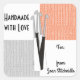 Modern retro crochet hooks in black and white on a grey and custom-colour block background with sweater texture on business cards and handmade-with-love stickers or product labels for your favourite yarn hobby!
