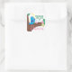Cute fat blue bird with knitting needles ’handmade with love’ gift tag sticker, product or packaging label for knit and yarn crafts and crafting. Bird sits in a tree with balls of yarn for leaves, knitting from a ball of green yarn.