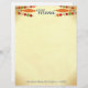 Colourful fish and vegetable kebabs with custom coloured background and burnt corners on this menu letterhead for a dinner party, chef night, catering or caterer's food list.