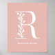 Custom Colour Floral Monogram Letter R Name Nurser Poster