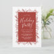 This elegant holiday party invitation features an ornate, winter foliage frame over your custom colour background (shown in burnt red).