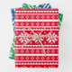 Custom colour knit snowflake pattern Christmas. Fun colourful gift wrap for the Holiday season.