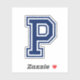 Letter P sticker. Sports college font, any custom colour. You can change the colour of the letter with the customisation tool. The complete alphabet and numbers 0-9 are available.
