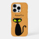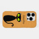 Mod kitty with green eyes and an orange background. If you have a different case, you may have to customise, so the camera doesn't cover your name. You can change the background colour. Personalise it or remove the name!