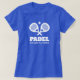 Custom colour padel tennis t shirts for women. Funny tee for padel players and enthusiasts. Crossed rackets design with tennis ball logo. Cool Birthday gift idea for men or women who love the game. Create one for friends, family, ladies team, group, club coach, trainer, dad, husband, friend, boyfriend, brother, coworker, doubles partner, sister, girlfriend, fan etc. Available in blue and other colours. Add your own personalised quote or text optionally.