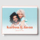 This simple, stylish wedding guest book features a full bleed photo template. A white gradient overlay towards the bottom allows the retro styled text to stand out against your photo. The overlay can be moved up or down, if needed. The text and background colour can be customised to any colour you'd like.