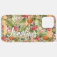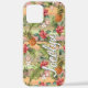 Contemporary coral red, pink, orange, yellow, and green tropical floral, pineapple, and stripes pattern. With room to customise or personalise with a name, monogram, or initials of your choice. Beautiful, modern, and cool cover for the trend-savvy and art-loving hip trendsetter, artsy motif lover who wants to protect their phone from dust and dirt, wear and tear. This design is available for Apple iPhone 6, 7, and 8 Plus, 10 or X, XR, XS, 11, 12, 13 Mini, 14, 15 Plus, and Pro Max cellphone cases. Show off your style, look fashionable, and feel stylish with a unique design on a mobile device accessory of your choice.