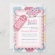 A custom baby shower invite for girl featuring owl and string and label and large flower in many colours design