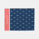 Nautical style blanket featuring a white anchor pattern with an editable background colour, click the customise button for access. To change the blue colour, select background colour and change its colour. To change the coral colour, select rectangle layer and change its colour.