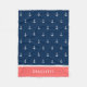 Custom Colours Add Name Nautical Anchor Fleece Blanket