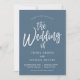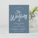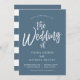 A unique wedding invitation featuring dancing white script style lettering against the colour of your choice followed by your unique wedding day details.