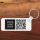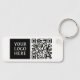 Keychain customised with your company logo and QR code on the front, and company information on the back. The background colour is customisable using Zazzle's design tool.