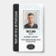 Fully customisable employee ID badge with a geometric background pattern. Personalise with your ID photo, employee number, job title, company name, logo and issue/expiration date. On the back you can add your barcode/QR code and additional information. This stylish template is ideal for various workplaces and professions such as private security guard, store security, personal bodyguard, official doorman, event security, corporate professional, retail employee, medical staff, small business pass, conference name tags and more. Printed colours: blue, gold, black and white. Shop the collection for more badges and tags for sale online, designed for the security service industry.