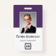 Easily personalise this custom purple employee name and photo badge with your own company logo and qr code or bar code. Available with different background colours and attachments. No minimum order quantity.