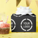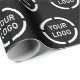 Custom your own branded wrapping paper with company logo on colour editable black background, great gift wrapping ideas for business. No minimum order quantity and no setup fee.
