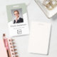 Easily personalise this custom sage green employee name and photo badge with your own company logo and qr code or bar code. Available with different background colours and attachments. No minimum order quantity.