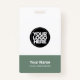 Easily personalise this Custom Administrative professional Name Badge without photo, with Scan Bar Code and large business logo. A simple business design in organic sage green and white colours fully customisable in front and back sizes, sans-serif basic and modern fonts and a professional and clear look, perfect for small business employee, boss, guests. These business id badges supplies are avaiable with lanyard, metal clip or with retractable. No minimum order, but save money and enjoy Zazzle discounts by multiple orders!