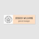 Introduce a subtle, inviting style with this horizontal name tag, featuring a gentle, light peach main panel that provides a friendly, contemporary background. The employee's name and title are presented crisply in black text, ensuring high contrast and immediate readability. The left section is a clean white square, perfectly reserved for showcasing your company logo, resulting in a balanced, minimalist, and beautifully branded accessory.