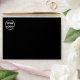Make your correspondence look professional with black custom 5"x7" greeting card business envelopes branded with your company logo on the top left of the front. The back flap has a customisable printed return address. On the bottom of the back, you can add your website URL or your company's slogan. Replace the sample logo, address, and text with your own in the sidebar. Your logo can be circular, square, or another shape. This design will work best with logos which look good on a black or dark background. You can choose other envelope colours in the sidebar.