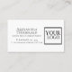 This professional business card features a simple, sophisticated theme with black text on a white background. A sample company or business logo is placed on the right, with a sample name, company title, and contact information on the left. You can personalise the business cards to include your own logo or image and custom contact info.