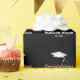 Congratulations to the graduate! This black white and faux (not foil) offers 'Congratulations' to the graduate in faux gold script. Above the faux gold text is a white graduate's cap. Below the script you can personalise with the graduate's name and class of year.