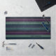 Classy, fun, and contemporary black, dark blue, and teal green coloured striped watercolor pattern design on a faux leather texture background. With room to customise or personalise with a name, monogram, or initials of your choice. Stylish original and cool keyboard desk pad for the trend-savvy and art-loving hip trendsetter, trendy look style motif lover.