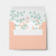 Use this custom coral or peach envelope in place of the generic white envelopes that come standard with all of the cards and invitation in the Rustic Floral Wedding Collection. This wedding rsvp envelope has a coral and mint green floral pattern on the inside and a pre-printed address on the front. You can easily customise the address on the product order page. The default size is 5 3/4" W x 4 3/8 H (A2) and fits the small greeting cards and invitations. You can order a different size by selecting "customise it" and "Choose your paper type and colour". A7 fits 5x7 invitations and cards. A6 is for the small invitation, but will also fit the small greeting card (note card). A2 is for the small greeting card (note card), but will also fit the small invitation. We also offer this envelope design without the printed address if you would rather write your own or use address labels.