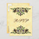Custom RSVP postcards with elegant script letters in browns and beautiful vintage art of a cornucopia, a symbol of a bountiful harvest, with fruits and vegetables on a faux parchment background. Click Customise It to change fonts, colours, sizing and more, even save your design for later.
