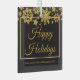 Chic corporate Christmas ornament with Happy Holidays written in elegant gold cursive script under a beautiful border of snowflakes falling on a modern black holiday design. Customise this professional holiday gift with your company or business name.