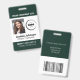 Easily personalise this professional employee photo ID badge with your custom details. It includes Company´s name and logo, the employee´s photo, name, ID number, and expiration date. On the reverse of the badge, there is a company address and bar code, which can be changed for a logo or other file. The typography is modern and simple, for great readability. The colour scheme is white and emerald green, which can be also changed. To customise this badge, click on the ´´Personalise this template´´ button and fill in the spaces provided with your information and files. You can simplify the badge by deleting some of the template text. To customise the colour of the background, click on ´´Edit using design tool´´. And if you need any help with this design, message me on Zazzle!