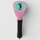 Golf Club head cover featuring a woman golfer silhouette. Change the text, font style and colour plus the colour of the head cover. Customise it to meet your taste.