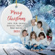Custom elegant annual Christmas ornament with snowflakes, and a photo of all the cousins. Add any personalised text you want on the front and back. The example features a red Merry Christmas or Happy Holidays message on the back along with the current year and the names of every kid. All text is editable.