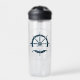 Chic custom summer vacation keepsake water bottle for a beach cruise line on the ocean featuring a navy blue boat steering wheel. This nautical themed gift is perfect for a sailor or ship captain on the seaside. Personalise with your own text.