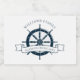 Chic custom summer vacation mini champagne bottle labels for your beach cruise on the ocean featuring a navy blue boat steering wheel. This nautical themed design is perfect for classy matching family reunion keepsakes to commemorate the special trip. Personalise with your last name and year.