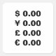 Custom Currency Symbol price Stickers for business. Use the alt code for Dollar, Pound, Yen, euro and more.